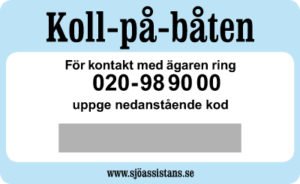 Du aktiverar tjänsten Koll-på-båten i länken nedan. Du får då två dekaler som innehåller en sifferkod och telefonnumret till Sjöassistans. Dekalerna fäster du väl synliga på båten. Till exempel på mastfot, vindruta, för- eller akterpulpet. Eller när båten är vinteruppställd direkt på skrovet, väl synligt från marken.